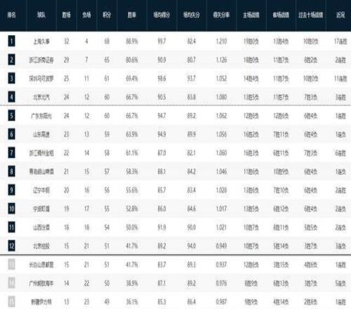 CBA最新排名!上海14連勝傲視群雄,黑馬殺回第三,廣東跌至第五