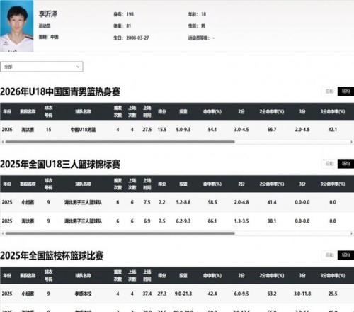 事件的起因源于4月11日網(wǎng)絡(luò)上的大量爆料,網(wǎng)友和自媒體發(fā)現(xiàn)李沂澤的外貌與一名曾參加國內(nèi)青少年賽事的球員張涵泊高度相似,甚至可以說是一模一樣。爆料信息顯示,李沂澤在代表U18國青隊和湖北隊參加2024年首屆全國青少年三大球運動會時,注冊的出生日期為2008年3月27日,符合U18賽事的年齡要求。而名為張涵泊的球員在2022年代表湖北青年男籃參加U17青少年籃球賽事時,注冊出生日期為2006年3月27日,兩人不僅外貌一致,連陰歷生日都完全相同,這種巧合讓網(wǎng)友們對李沂澤的真實身份和年齡產(chǎn)生了極大懷疑。