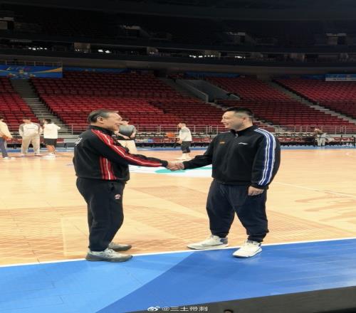 上午的踩場訓(xùn)練中,場邊發(fā)生有趣的一幕,北京男籃主帥許利民和上海男籃主帥盧偉寒暄,他說道:“你們現(xiàn)在太猛了,拿第一了啊?!?/p>