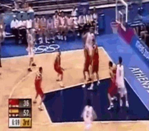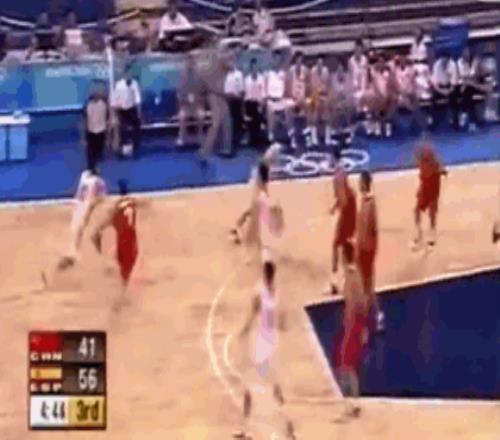 2004年雅典奧運會,已經(jīng)無比成熟的、在國內(nèi)拿了很多冠軍的李楠對陣西班牙男籃“黃金一代”又砍14分。