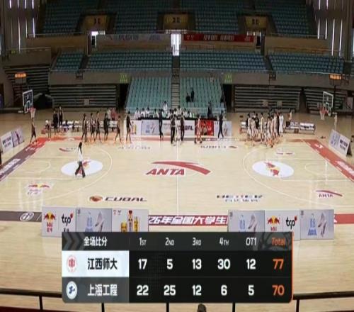 加時賽,金宇航兩罰先領先,孫發(fā)航二次進攻打成后三分再中反超1分,熊權造殺傷反超回來,丁伯儒籃下強打后金宇航再造殺傷領先到5分,顧凡反擊扣籃終結比賽,最終江西師大加時77-70逆轉上海工程。