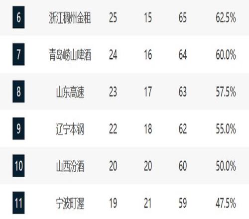 6-9分別是浙江、青島、山東和遼寧,他們之間上下都差了一個勝場。而浙江和青島這輪都取勝了,不過山東已經(jīng)五連敗了,遼寧這輪則輸給了浙江,他們錯失了追平山東的機會。而對這幾支球隊來說,他們還有排名起伏的可能性,特別是山東最后兩場的對手實力都很強,遼寧還是有機會反超到第八的位置。
