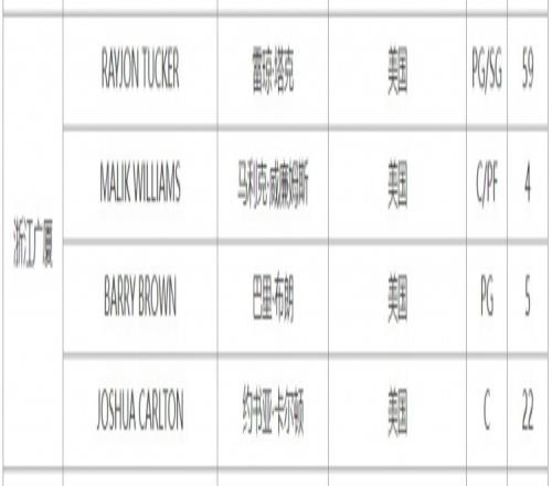 完成這次換外援操作后,廣廈目前的四外援陣容為塔克、馬利克·威廉姆斯、巴里·布朗以及卡爾頓。