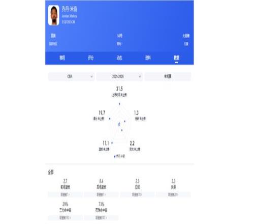 米奇稱得上是CBA的勞模外援,出場(chǎng)必首發(fā),場(chǎng)均出場(chǎng)時(shí)間高達(dá)31.7分鐘。而且他攻防兼具,場(chǎng)均能得近20分,同時(shí)還有近11個(gè)籃板、1.2次搶斷、2蓋帽。