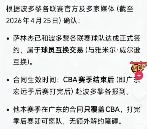 廣東男籃最新消息!薩林杰完成新簽約,三將賣票,薩姆納傷病嚴(yán)重