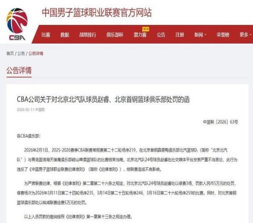 CBA公司迅速啟動(dòng)紀(jì)律程序,對(duì)其處以禁賽三場(chǎng)、罰款人民幣五萬(wàn)元的頂格處罰;其所屬俱樂(lè)部亦被同步核減聯(lián)賽經(jīng)費(fèi)五萬(wàn)元。