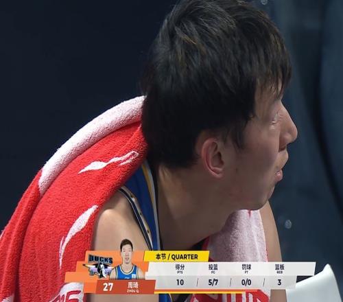 第四節(jié)最后6分鐘,周琦替換麥基重新回來(lái)收割比賽,北京再次主打一五擋拆,與此同時(shí),大比分落后的天津沒(méi)有放棄,外線瘋狂出手,鄭昊燃、李宗霖連中3記三分追到14分分差。