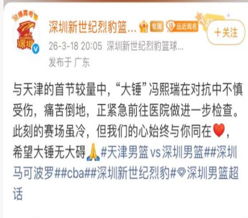 馮熙瑞的具體傷情,還需要等待檢查之后,深圳男籃官方的進(jìn)一步通告。