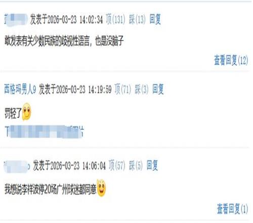 而對于這次處罰,球迷們也給出了不同的看法,評論區(qū)主要分為兩派,一部分球迷認為對李祥波處罰還是太輕了:敢發(fā)表有關少數(shù)民族的歧視性語言,也是沒腦子;我想說李祥波停20場廣州球迷都同意;罰的太輕了這不是第一次都已經(jīng)第二次了還這么給人家撓癢癢還會有下次的。