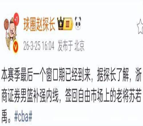 根據(jù)媒體人報道,CBA名將蘇若禹確定會在這個窗口期加盟浙江廣廈,他重返老東家效力,對于浙江廣廈來說,這是一次非常好的補(bǔ)充,特別是5號位,以蘇若禹的能力來說,還是會比吳驍要好一些,這也是一個信號,浙江廣廈本賽季的目標(biāo)就是全力衛(wèi)冕總冠軍。