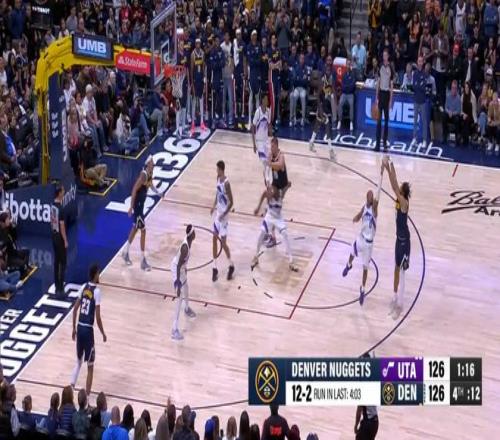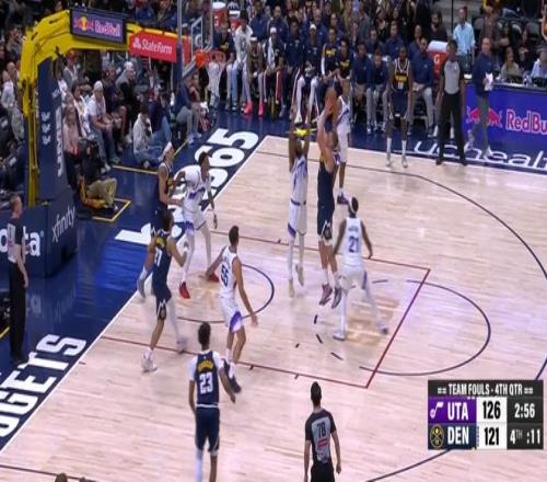 直至第四節(jié)剩下3分鐘前,掘金依然以121-126落后5分,然后約基奇接管了比賽: