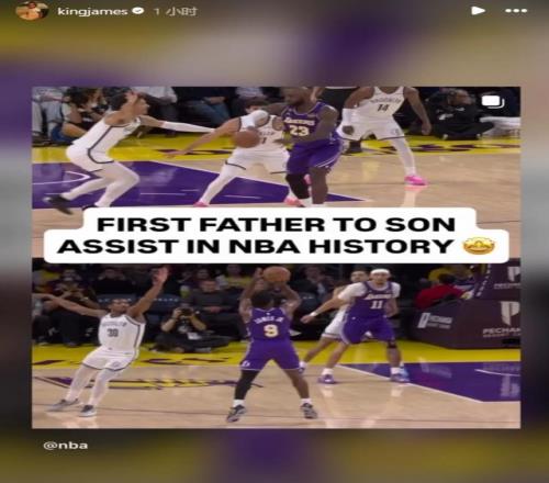 賽后,詹姆斯也更新個(gè)人社交媒體轉(zhuǎn)發(fā)了這一瞬間并寫道:“NBA歷史首個(gè)父親為兒子送出的助攻。”