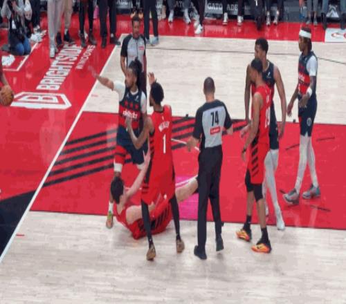 楊瀚森被裁判肯尼迪拉起后無奈對里斯搖頭攤手&全程保持笑臉