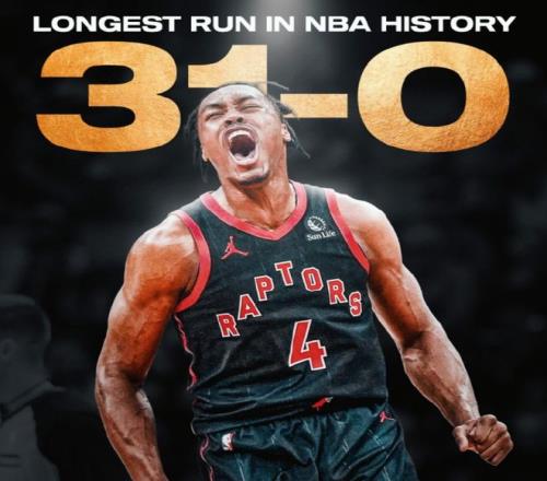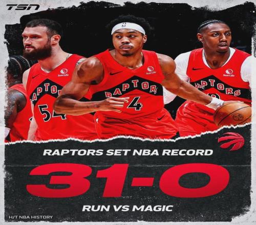 在這波31比0的進(jìn)攻高潮里,猛龍合計(jì)14投10中,在罰球線上8罰7中。
