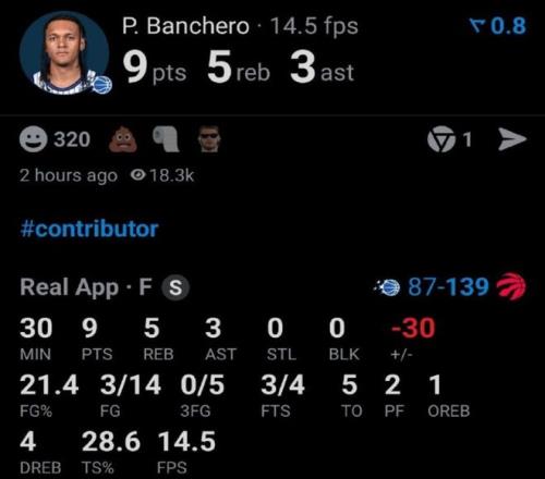 本賽季至今,班切羅在場(chǎng)時(shí),魔術(shù)的凈效率是-0.5;班切羅不在場(chǎng)時(shí),魔術(shù)的凈效率是+2.5。