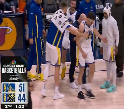 末節(jié)開場穆雷單獨先帶隊,波爾津吉斯也登場,小佩頓三分,穆雷回應(yīng)2+1,穆雷再來一個三分,科爾暫停后勇士一波5-0縮小到10分。波杰制造追尾犯規(guī),斯特勞瑟反擊命中后,小哈達威三分命中再拉開到15分,波杰超遠三分回應(yīng),穆雷后仰得手,波杰三分續(xù)命,布朗回應(yīng)三分,布勞恩點波杰上籃,掘金回應(yīng)7-0打??茽?。勇士率先放棄比賽,隨后阿德爾曼也換下主力比賽走向完結(jié)。
