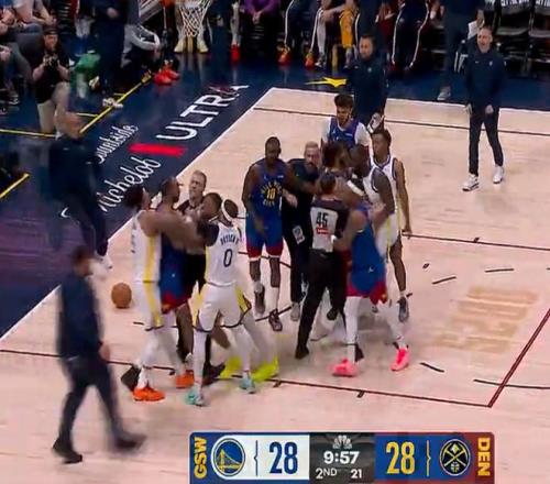 次節(jié)開場布朗超遠三分命中,布朗拋投再中幫助掘金扳平,隨后小佩頓、梅爾頓、克萊爾、納吉、哈達威、穆雷等人爆發(fā)沖突,裁判給了納吉、佩頓、梅爾頓三人T,穆雷技術(shù)犯規(guī)罰球命中反超了,小哈達威三分命中,掘金退防太慢勇士連續(xù)反擊再度反超。掘金的防守突然就崩潰了勇士一度拉開13分,約基奇連續(xù)發(fā)力縮小到7分結(jié)束上半場。