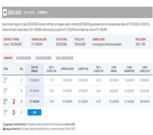 文森特三年3300萬(wàn)的合同到期后他可能就沒有千萬(wàn)年薪的可能性,今夏文森特只能去追逐底薪或部分中產(chǎn)560萬(wàn)左右的合同了。