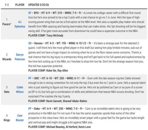 而在DX的預(yù)測上,布澤爾的預(yù)測順位是第四,最終是由國王選中他。狀元的人選都是楊百翰大學(xué)的迪班薩,看起來四號位的布澤爾被看衰前景。