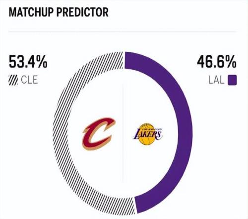 賽前,美媒ESPN對本場比賽進行了勝率預測,湖人隊勝率僅有46.6% ,騎士勝率則為53.4% ,稍占優(yōu)勢。