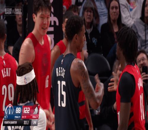 場下自不必說。他風趣幽默、輕松自信,和隊內(nèi)幾乎每個人都關(guān)系很好,以至于都達到了有口皆碑的程度。雖然不及他的隊友朱-霍勒迪(后者今日入圍最佳隊友獎候選,詳見今日次條),但楊瀚森也算得上隊內(nèi)的開心果。