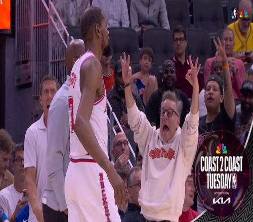 火箭隊的杜蘭特上半場得到18分、5個籃板和4次助攻,伊森得到15分;尼克斯隊的布倫森和哈特各得到7分。