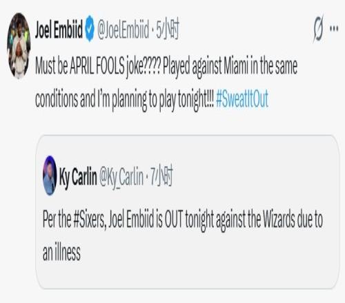 強制輪休76人宣布恩比德因病缺戰(zhàn)本人反駁:愚人節(jié)玩笑我打