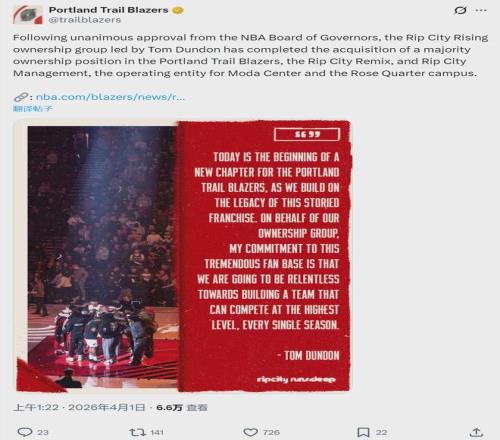 這件事并非NBA調(diào)查出來的,而是開拓者主動(dòng)上報(bào),所以聯(lián)盟處罰并不重。很多球迷不理解:開拓者是不是傻?為啥要找著被罰?這事還得結(jié)合另外一條新聞:4月1日開拓者官宣,聯(lián)盟董事會(huì)已經(jīng)批準(zhǔn),湯姆-鄧頓領(lǐng)銜的投資集團(tuán)完成對(duì)開拓者的收購(gòu)。