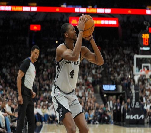 易邊再戰(zhàn),文班亞馬面對(duì)格林防守直接干拔三分命中,個(gè)人已砍下30分,隨后又造成追夢(mèng)格林投籃犯規(guī),后者個(gè)人已經(jīng)累計(jì)5犯了。文班亞馬持球強(qiáng)打,翻身打板中投命中,已經(jīng)砍下41分,平賽季新高紀(jì)錄。巴恩斯急停跳投三分再中,馬刺已經(jīng)將分差拉開(kāi)至26分。