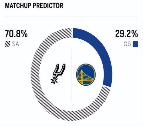 賽前,美媒ESPN對(duì)本場(chǎng)比賽進(jìn)行了勝率預(yù)測(cè),馬刺隊(duì)勝率高達(dá)70.8% ,勇士勝率則僅有29.2% ,差距非常明顯。