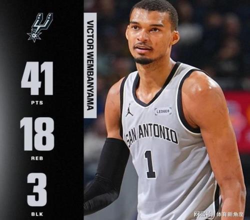 面對(duì)公牛隊(duì),文班亞馬僅用約31分鐘便狂攬41分,同時(shí)摘下16個(gè)籃板,送出4次助攻,還完成3次蓋帽;迎隊(duì),他更是火力全開,不到29轟下41分,搶貢獻(xiàn)3次助攻與