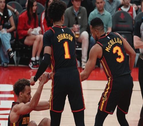 為什么這么強(qiáng)啊?仔細(xì)看高階數(shù)據(jù)就能發(fā)現(xiàn)端倪,麥克勒姆作為一名35歲的老將,雖然來(lái)到老鷹后,場(chǎng)均不過(guò)18.4分4助攻,可以用超級(jí)簡(jiǎn)配版哈登來(lái)形容,但當(dāng)他在場(chǎng)時(shí),球隊(duì)凈效率值+9.8,助攻率提升3.8%,失誤率降低3.4%;而當(dāng)他不在場(chǎng)時(shí),球隊(duì)凈效率值只有-0.6!再看他們的陣容搭配效率,麥克勒姆+丹尼爾斯+亞歷山大沃克+杰倫約翰遜+奧孔武同時(shí)在場(chǎng)打了327分鐘,球隊(duì)百回合贏對(duì)手21.9分!本賽季所有出場(chǎng)300分鐘的五人組中,效率值最高!這是一套絕對(duì)完美的陣容,除了奧孔武,任何人都能作為進(jìn)攻發(fā)起點(diǎn)。