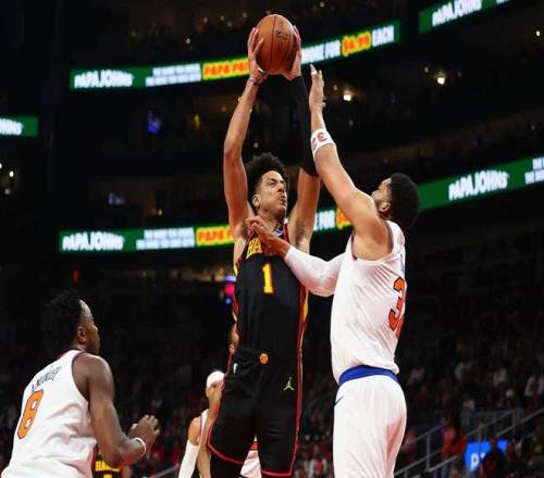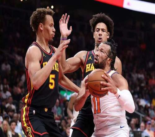 中場休息回來,雙方連續(xù)兩節(jié)單節(jié)不足30分,杰倫繼續(xù)三分命中率隊擴大6分優(yōu)勢,尼克斯連追4分。老鷹一波8-0攻勢擴大10分優(yōu)勢,布倫森與唐斯攻傳結(jié)合表現(xiàn),引領(lǐng)一波17-3攻勢反超4分。老鷹很快迫近比分,尼克斯單節(jié)28-22凈勝6分,三節(jié)結(jié)束尼克斯81-79反超老鷹。前三節(jié)比賽雙方均4人得分上雙,尼克斯三分26中9,唐斯11中9得到21+9與布倫森16中5得到13分12助攻;老鷹三分30中11,沃克12中8得到25分與杰倫18+9+3。