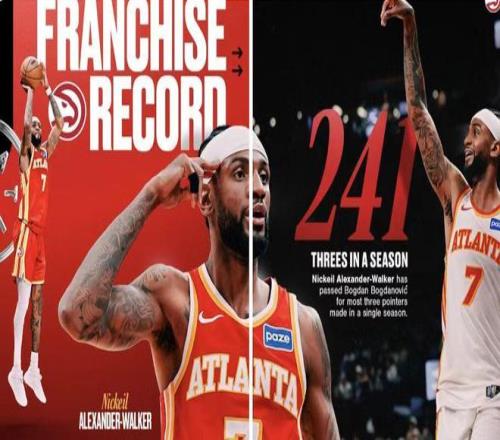 沃克本賽季命中244記三分,創(chuàng)造老鷹隊史單賽季第一紀錄。