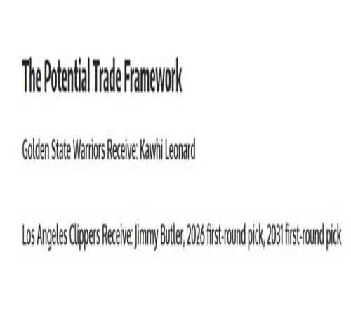 也正是這種處境上的差異,讓勇士追逐倫納德的想法,比兩個月前更加迫切,也更加有意義。蒂姆·川上透露,勇士管理層已經(jīng)明確表態(tài),休賽期將繼續(xù)積極出擊,目標就是圍繞庫里,打造最后一次真正有競爭力的沖冠陣容,而倫納德,就是他們眼中唯一能真正改變球隊上限的超級巨星。經(jīng)過多方梳理,目前流傳最廣的交易框架已經(jīng)浮出水面,堪稱一場大膽的3換1豪賭:勇士送出吉米·巴特勒、2026年首輪選秀權(quán)和2031年首輪選秀權(quán),從快船手中得到卡懷·倫納德。