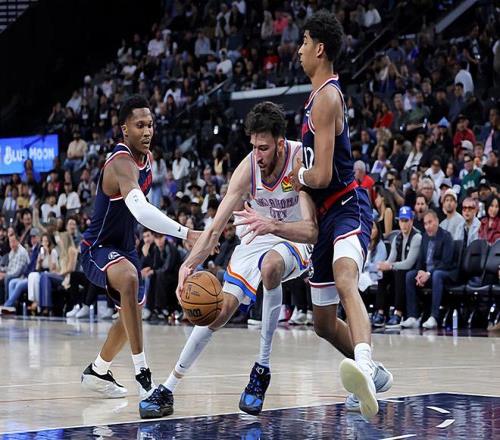 本場比賽中,雷霆的先發(fā)大前鋒切特-霍姆格倫(Chet Holmgren)的表現(xiàn)算得上是令人刮目相看。切特全場出場31分14秒,投籃13中10,三分線外4中3,罰球10中7,以超高的效率得到了全場最高分30分外加14籃板5助攻2搶斷4蓋帽的全面數(shù)據(jù),其中還包括了3個前場籃板,還有2次失誤和3次犯規(guī),正負值也是達到了全場最高的+19。切特在進攻端展現(xiàn)出了自己全面的得分能力,他在對手內(nèi)線能夠制造不小的威脅,進攻效率也是相當不錯的,也是制造了對手的多次犯規(guī)。不僅如此,切特在外線投籃方面的表現(xiàn)也是可圈可點的,而且他在傳球和策應(yīng)方面也能夠起到一定的效果。切特在防守端的表現(xiàn)同樣是極其出色的,他有著很大的防守覆蓋面積,而且他在護筐方面的表現(xiàn)也是值得肯定的??傮w來看,切特在本場比賽中算是打出了攻守兼?zhèn)涞娜苄捅憩F(xiàn),是球隊能夠戰(zhàn)勝對手的關(guān)鍵因素。