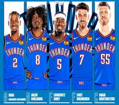 首發(fā)陣容方面,理論上雷霆排出的最強(qiáng)首發(fā)陣容為亞歷山大、杰倫-威廉姆斯、多爾特、切特-霍姆格倫、哈滕,這套首發(fā)總計(jì)出場(chǎng)11次,球隊(duì)?wèi)?zhàn)績6勝5負(fù).