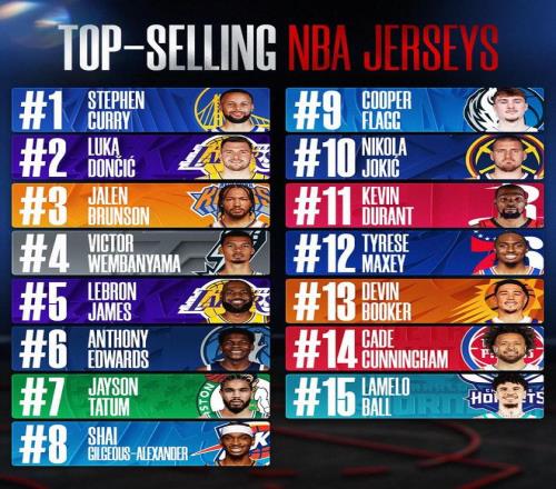 NBA2025-26賽季常規(guī)賽球星球衣銷量榜