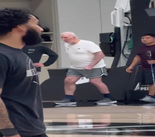 今日,馬刺傳奇教練波波維奇現(xiàn)身球隊(duì)訓(xùn)練場,并在場上指導(dǎo)現(xiàn)任主帥米奇。
