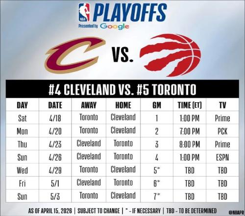 騎士對(duì)猛龍, 比賽的間隔時(shí)間:1天、2天、2天、2天、1天、1天,和湖人打火箭差不多,相當(dāng)輕松。