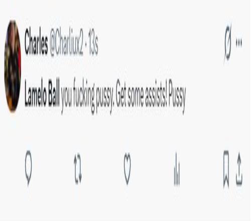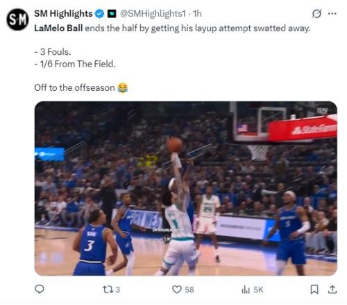 拉梅洛-鮑爾的哥哥朗佐-鮑爾在賽前還發(fā)推,黃蜂還完成二連勝鎖定東部第八去完成黑八奇跡,但上半場黃蜂就落后30+將朗佐的臉打爛。