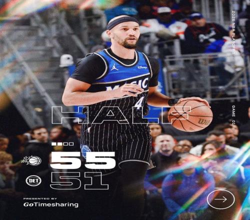 哈里斯連追4分開(kāi)始第二節(jié),卡特回應(yīng)三分,雙方之后拉鋸幾個(gè)回合,坎寧安和格林聯(lián)手5分,半場(chǎng)前4分40秒時(shí)活塞隊(duì)追至45-47。班凱羅這時(shí)又站了出來(lái),三分回應(yīng)重新拉開(kāi)??矊幇埠退箞D爾特聯(lián)手追回4分把差距縮小到1分,瓦格納左側(cè)0度角出手三分命中,半場(chǎng)結(jié)束時(shí)魔術(shù)隊(duì)以55-51領(lǐng)先4分。