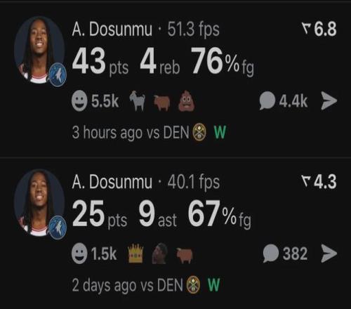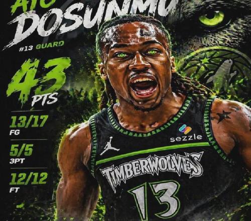 該場比賽森林狼主場112-96碾壓掘金,目前系列賽3-1大比分領(lǐng)先已拿到賽點(diǎn),替補(bǔ)出戰(zhàn)的道蘇姆扮演救世主,投籃17中13,其中三分5中5,罰球12中12狂轟43分。