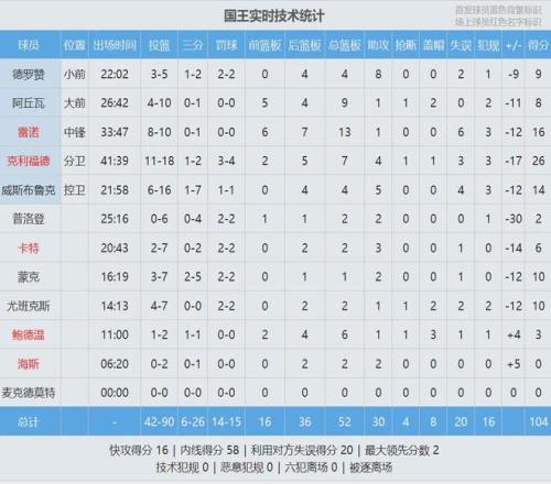 湖人首發(fā):東契奇、里夫斯、斯瑪特、詹姆斯、艾頓。國王首發(fā):威少、克利福德、德羅贊、阿丘瓦、雷諾。威少開局手感不佳,首節(jié)5中1僅得2分3助攻3失誤。國王全隊三分球5中0,第一節(jié)打完,湖人36-18領(lǐng)先國王18分。