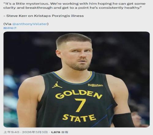 目前鉑金已連續(xù)休戰(zhàn)五場比賽且仍處于無限期休戰(zhàn)狀態(tài),根據(jù)勇士主帥科爾的說法,球隊醫(yī)療團隊正與前者合作試圖弄清他的神秘病情。