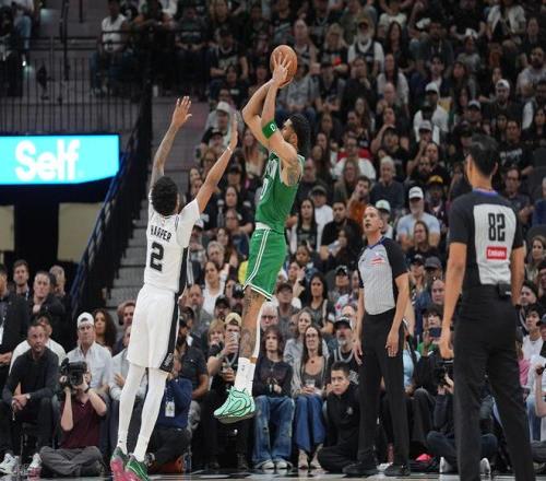 第三節(jié)比賽,懷特突籃下先拿2分,文班、瓦塞爾分別命中3分,懷特拋投再拿2分,文班3分再進,豪澤低位急停出手打進,??怂够伍_謝爾曼命中3分,馬刺領先6分!凱爾特人連續(xù)造犯規(guī)罰球,將分差縮小至3分!瓦塞爾跳投拿2分,懷特上籃打進,卡斯爾命中3分,塔圖姆晃過文班上籃打進,懷特3分命中,塔圖姆飛身上籃再拿2分,綠軍逆轉1分!馬刺的迪倫·哈珀強突哥哥小羅恩·哈珀打進2分,凱爾登又命中3分,馬刺領先4分!懷特點飛兩人殺籃下拿2分,卡斯爾滑翔上籃拿2分,懷特急停中投打進2分,文班命中3分,小羅恩·哈珀3分還以顏色!隨后迪倫·哈珀連拿5分帶領馬刺再度掀起進攻狂潮,三節(jié)打完,馬刺92-85領先綠軍!