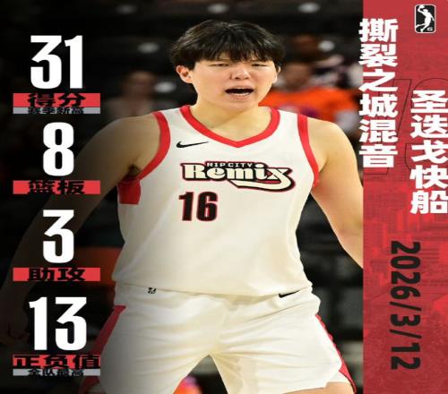 第三節(jié)的楊瀚森依舊是4中4拿到10分,三節(jié)打完12中12拿到27分,楊瀚森創(chuàng)造了個(gè)人G聯(lián)賽的連續(xù)命中紀(jì)錄,全場(chǎng)比賽31分鐘,16中14,三分1中1,拿到31分8籃板3助攻1搶斷1蓋帽僅1失誤,命中率88%,三分命中率100%。