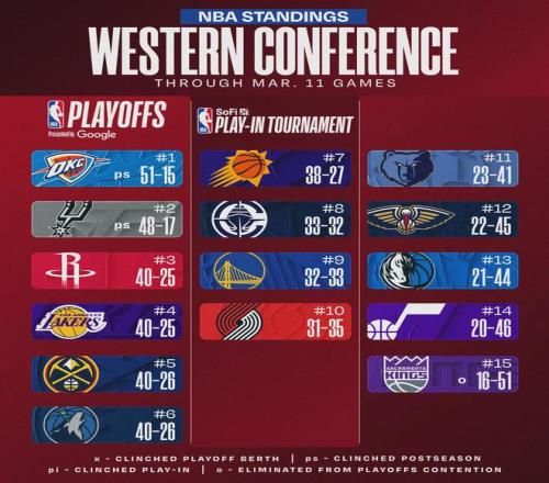 本場比賽過后,快船勝率達(dá)到50.8%,取得33勝32負(fù)戰(zhàn)績排名西部第八,已領(lǐng)先第九的勇士1個勝場,但仍落后第六的森林狼多達(dá)6個勝場。