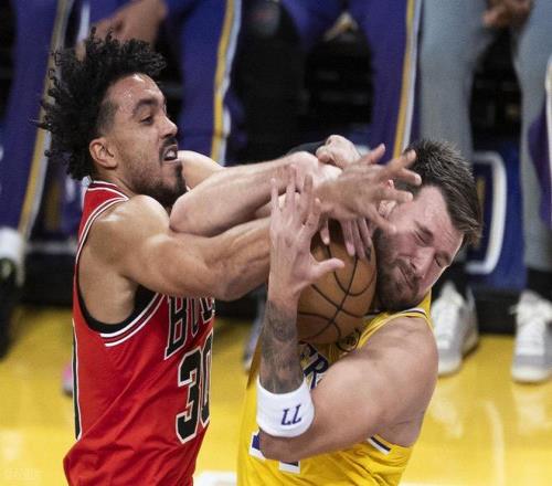 末節(jié)初段,湖人上來(lái)先挑戰(zhàn)成功拿回球權(quán),但公牛這邊連續(xù)追分,瓊斯兩罰兩中以后只差7分了。里夫斯挺身而出連砍5分打停公牛。回到比賽,老詹又造犯規(guī)罰球,艾頓籃下拋投連續(xù)打進(jìn),東契奇籃下背打再中領(lǐng)先到了18分,基本上把比賽打花了。但瓊斯連得4分,湖人喊個(gè)暫停。然后東契奇又是兩記三分,基迪三分止血但分差太大,公牛喊停換下主力投降了。