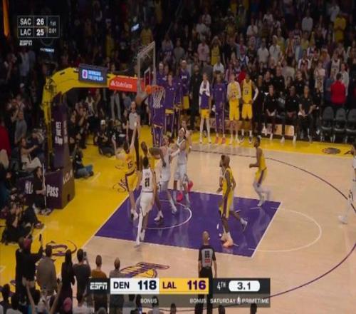 當(dāng)時(shí)剩下9秒前,掘金領(lǐng)先3分,然后采用點(diǎn)球戰(zhàn)術(shù),里夫斯第一次上罰球線,前兩罰全中,第二次再上罰球線,依然是落后3分,時(shí)間只剩下5.2秒,湖人沒(méi)有暫停。